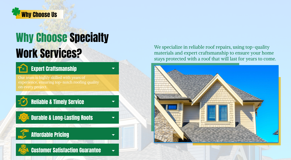 Specialty Work Services Roofing Company provides expert roofing solutions—contact us today for reliable service and a free estimate!