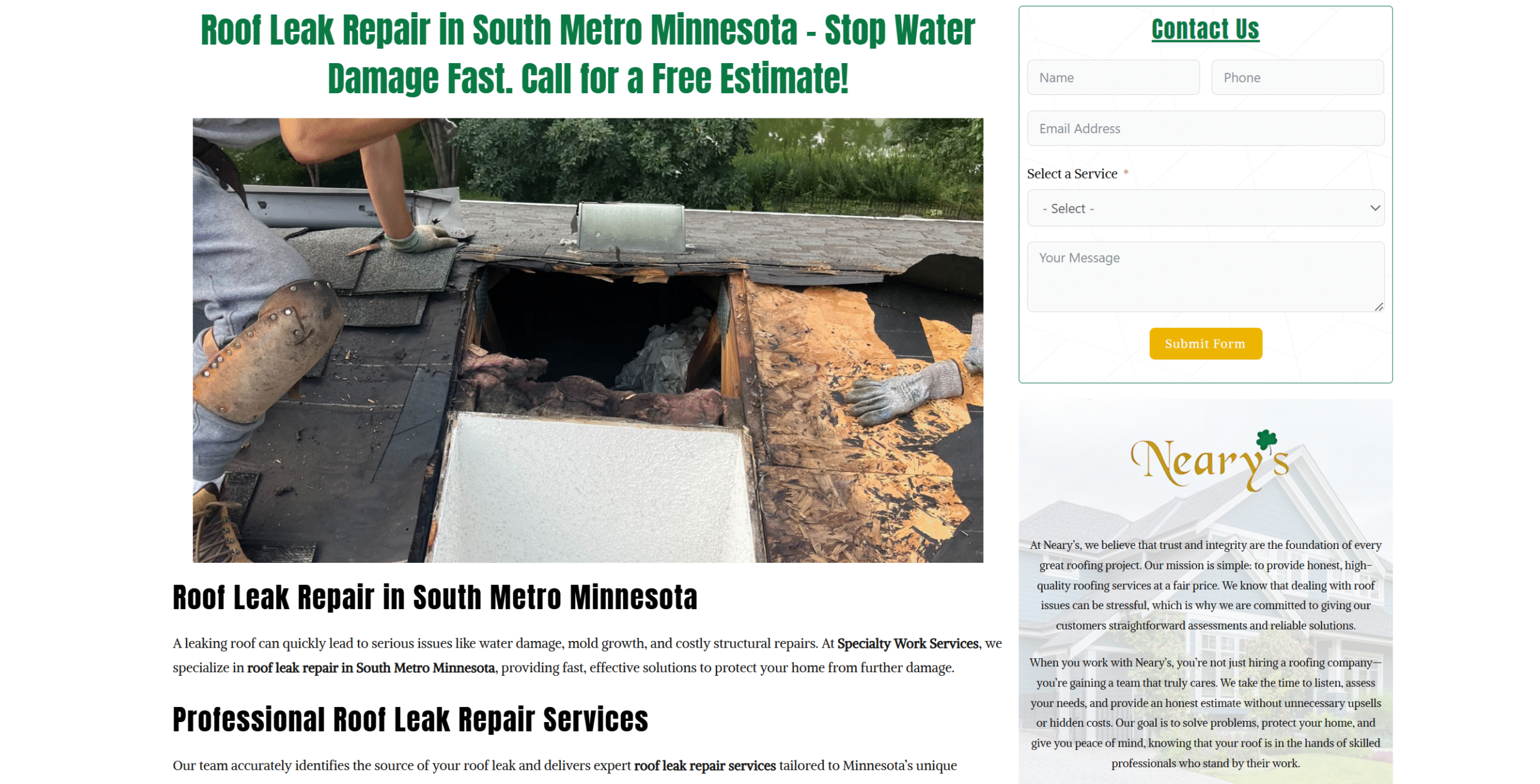 At Specialty Work Services, we help homeowners across Minnesota tackle leaks quickly and effectively. In this guide, we’ll break down the most common causes of roof leaks and explain how you can address them before they cause major damage.